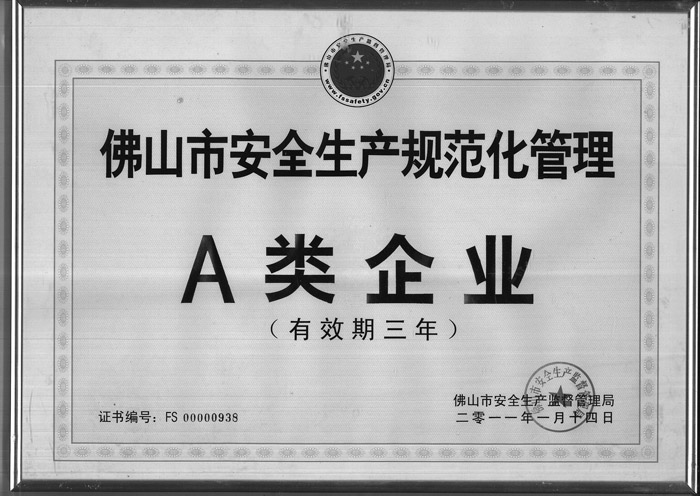 佛山市安全生產規(guī)范化管理A類企業(yè)